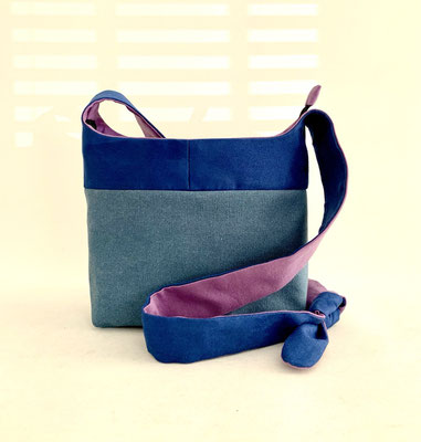 Matières utilisées : Très pratique en skaï pour l'hiver, ce petit format se prête bien à un grand choix de toile pour l'été. On peut aussi combiner deux matières, une pour la poche et une autre pour l'anse. Les doublures sont en coton épais de couleur unie assortie au tissu extérieur.