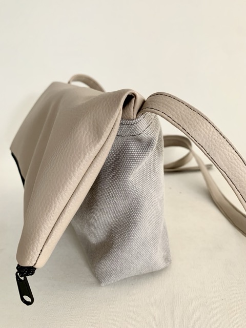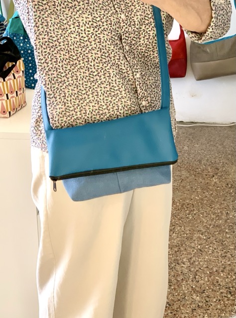 Se porte en bandoulière grâce à sa anse réglable par un noeud.
